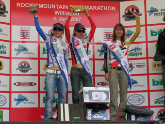 Siegerehrung Rocky Mountain BIKE Marathon 2007 in der Wertung "Kleine Runde Damen" (v. links Agnes Naumann, Adelheid Morath und Sandra Gockert) Bild: Karl Koch / Extremnews