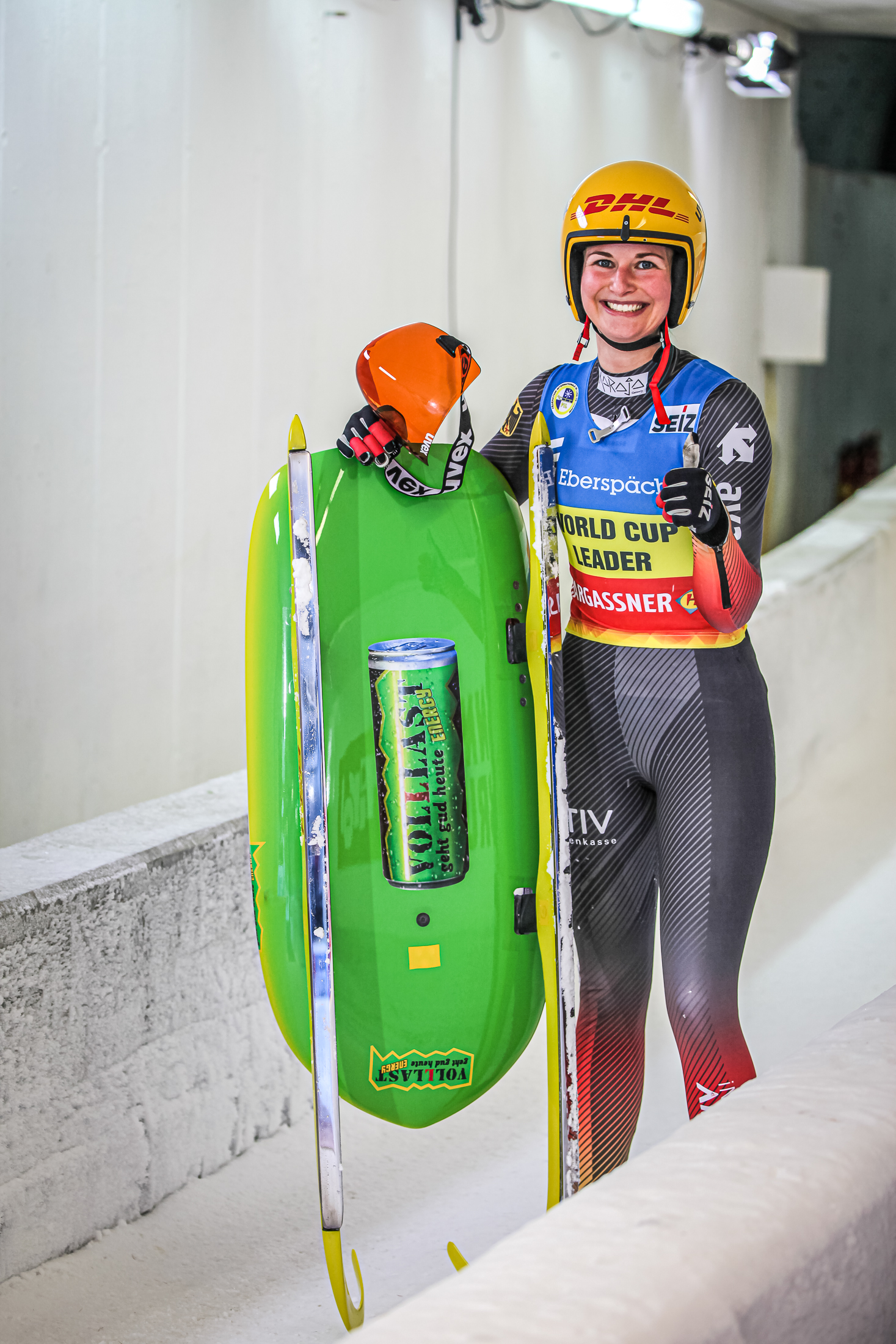 Rodel-Weltmeisterin und Gesamtweltcupsiegerin Julia Taubitz Bild: FIL - Internationaler Rodel Verband Fotograf: Mareks Galinovskis