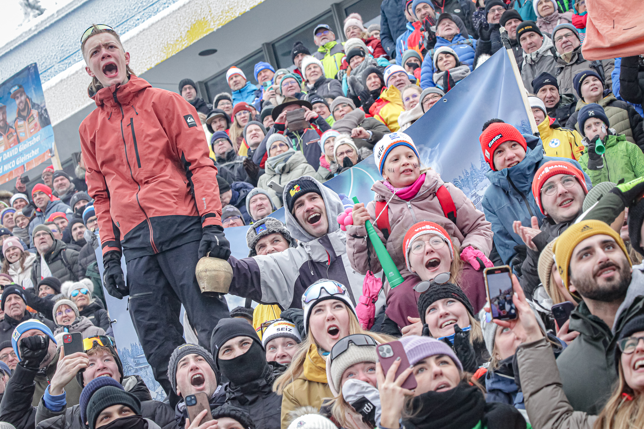 5.300 Zuschauer feierten am Sonntagvormittag den Österreichischen Rodel-Weltmeister Jonas Müller in Oberhof Bild: FIL - Internationaler Rodel Verband Fotograf: Mareks Galinovskis