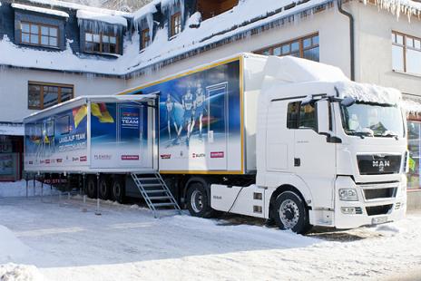 Petter Northug, Norwegens Ausnahme-Langläufer, kommt mit einem eigenen Bus. Bild: VIESSMANN/NordicFocus