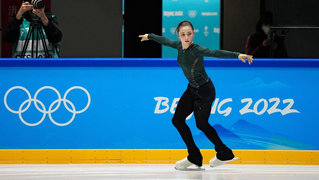 Die 15jährige Eiskunstläuferin Kamila Walijewa beim Training (12.02.22)