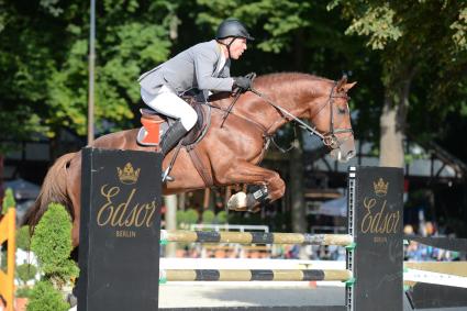 Zinedine und Beerbaum entschieden bei der 10. E.ON Westfalen Weser Challenge die zweite Qualifikation zum EDSOR Youngster Cup für sich. Bild:: "obs/EN GARDE Marketing GmbH"