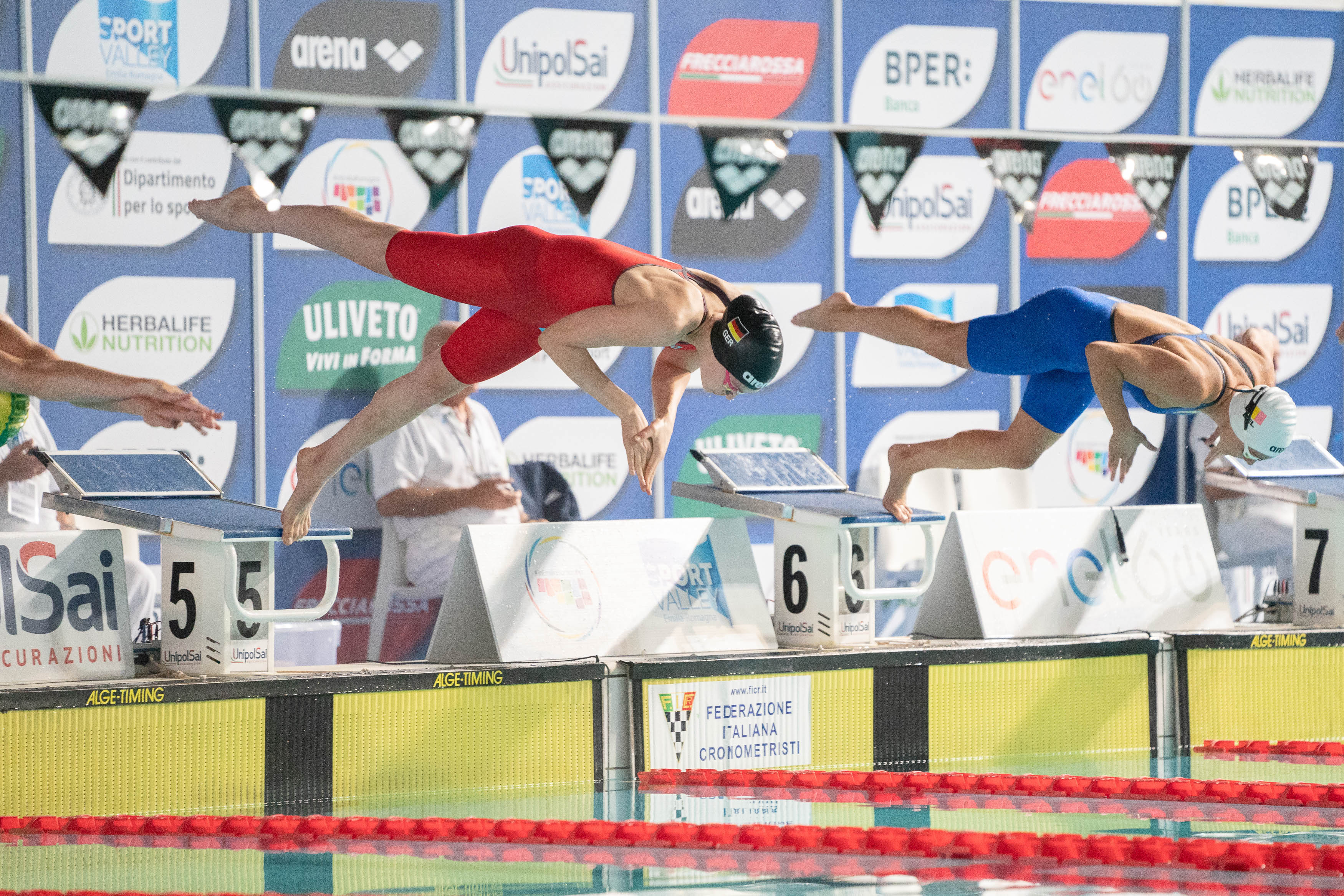 Nina Holt beim Start zur Disziplin 100 Meter Kombinierte Rettungsübung. Bild: DLRG e.V. Fotograf: Daniel-André Reinelt