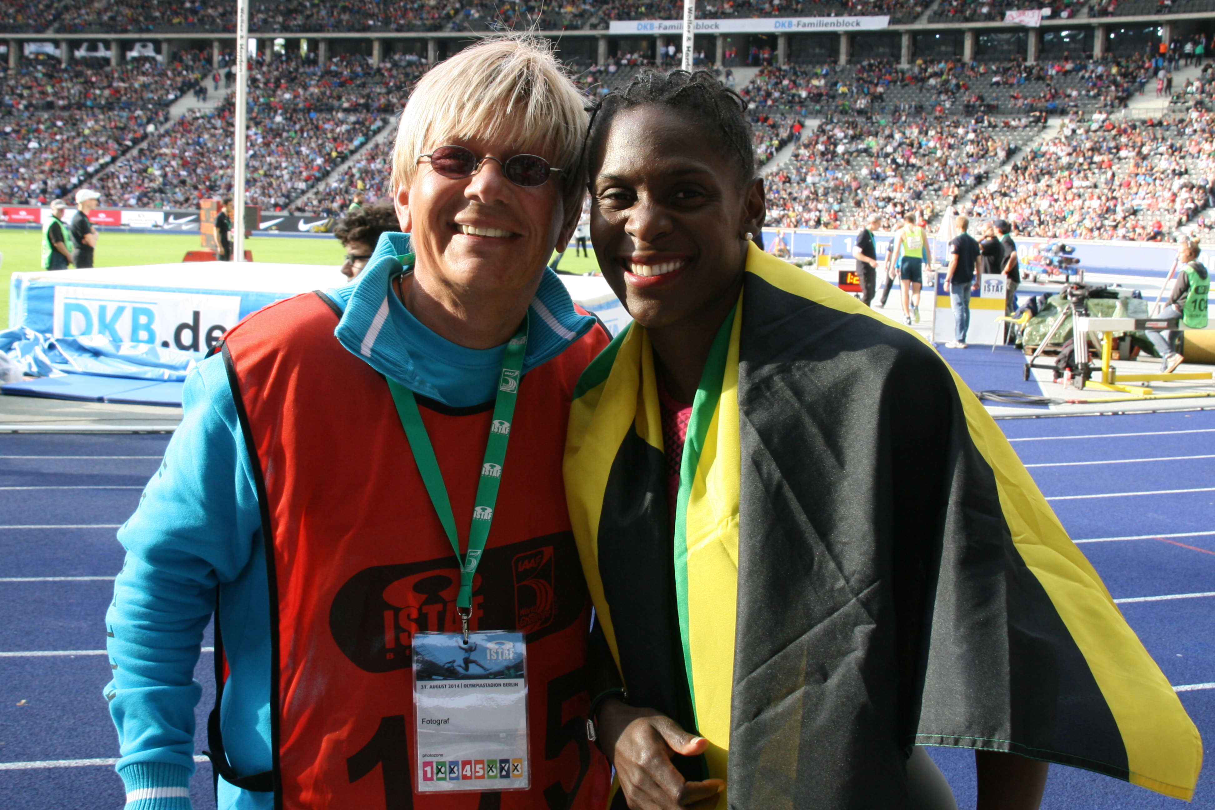 Die schnellste Frau Kerron Stewart aus Jamaika mit ExtremNews Fotograf Karl Koch. Bild: Karl Koch - ExtremNews
