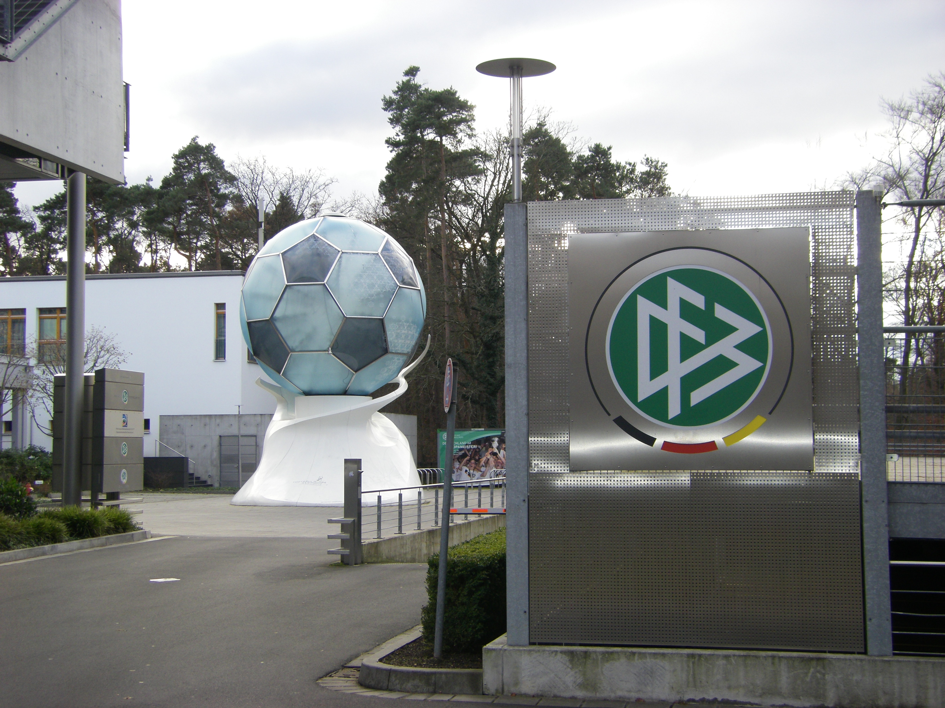 Eingangsbereich der DFB-Verwaltung in Frankfurt-Niederrad unweit dem Deutsche Bank Park