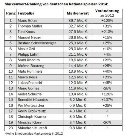 Zurück zu Studie: 36,7 Millionen Euro - Mario Götze wird wertvollste Fußballermarke in Deutschland