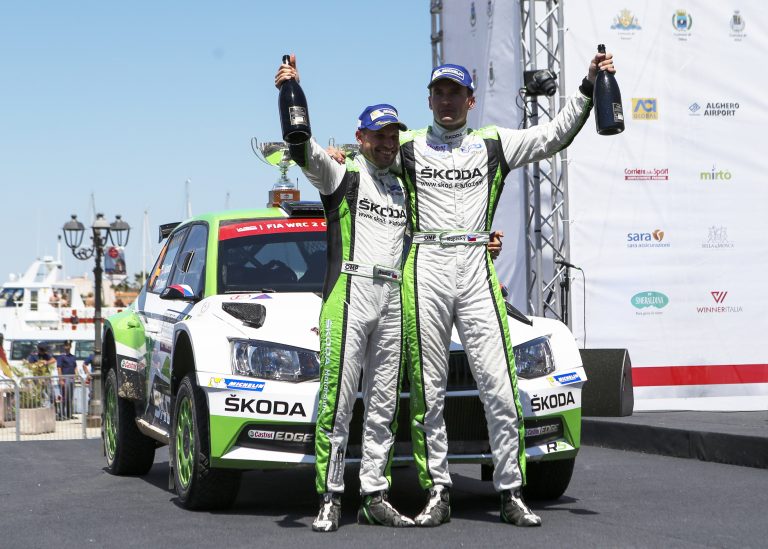 SKODA bei der Rallye Italien Sardinien: Jan Kopecky/Pavel Dresler (SKODA FABIA R5) fuhren 13 Bestzeiten in der WRC 2 bei der Rallye Italien Sardinien. Bild: "obs/Skoda Auto Deutschland GmbH"