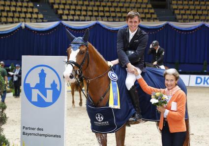 Wolfgang Puschak und For N in der Siegerehrung mit Angelika Borsum (Munich Indoors) . Bild: "obs/EN GARDE Marketing GmbH/Thomas Hellmann"