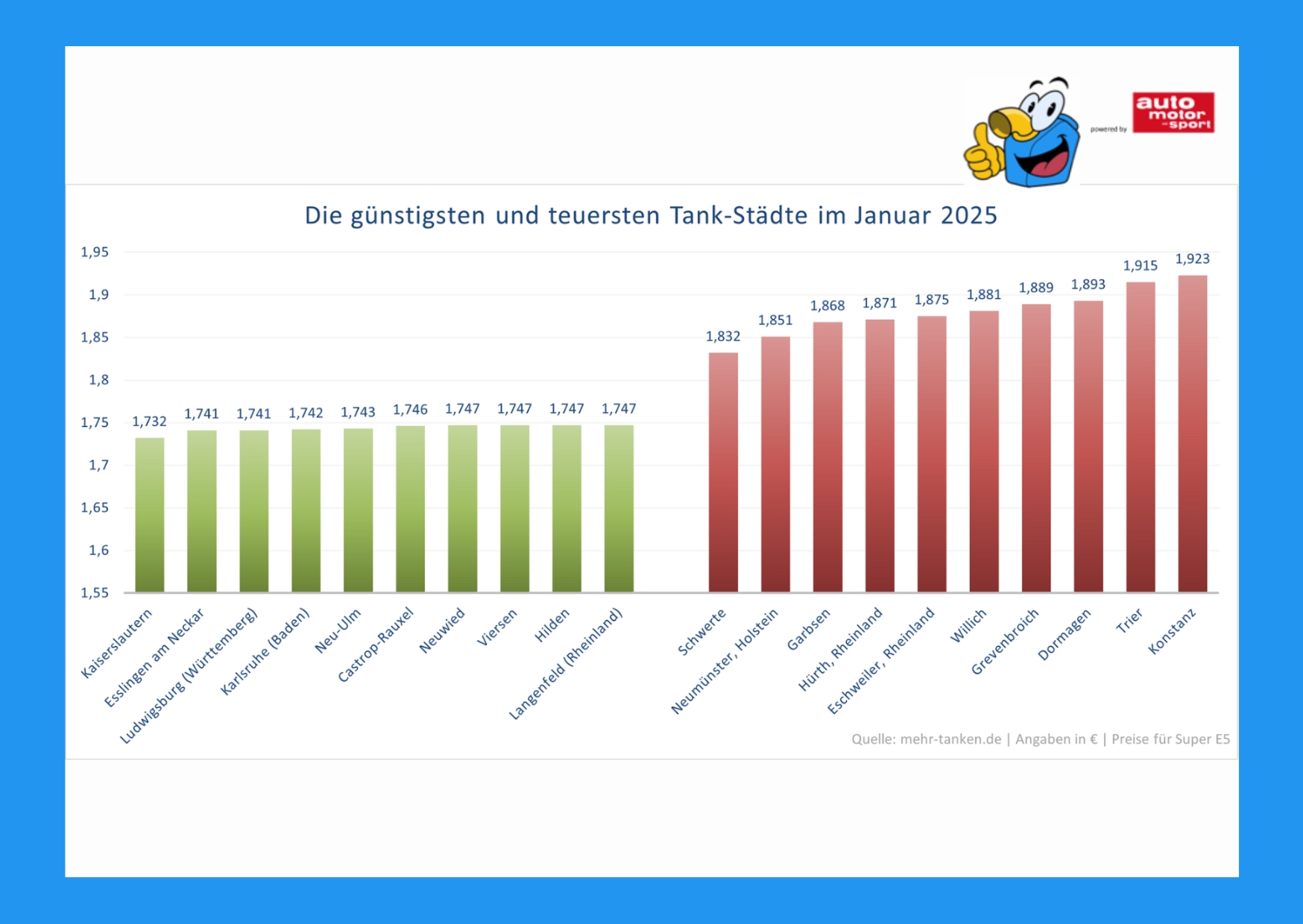 mehr-tanken / Das Städte-Ranking Januar 2025