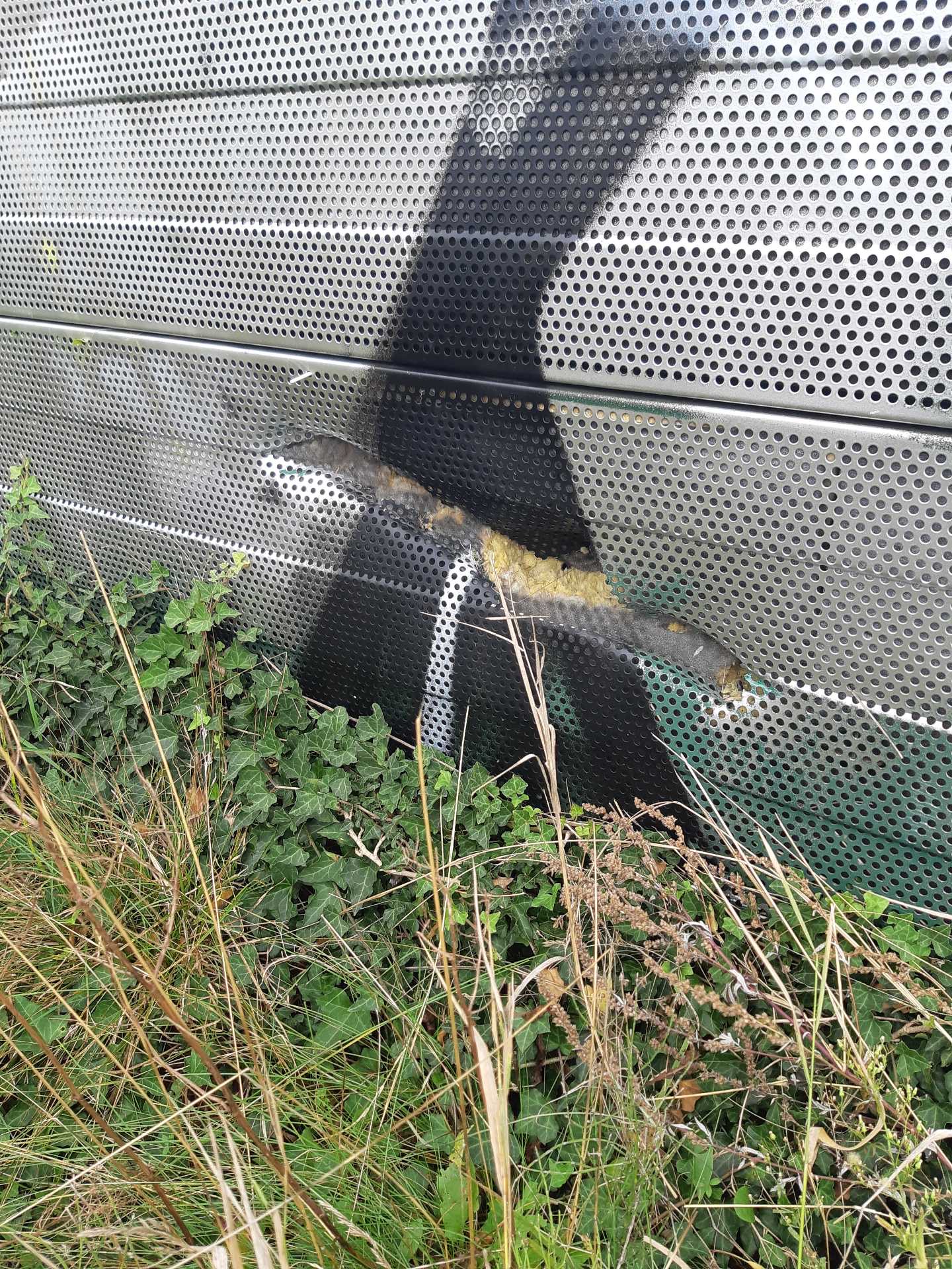In diese Lärmschutzwand schlug der Zaunpfahl ein Bild: Polizei