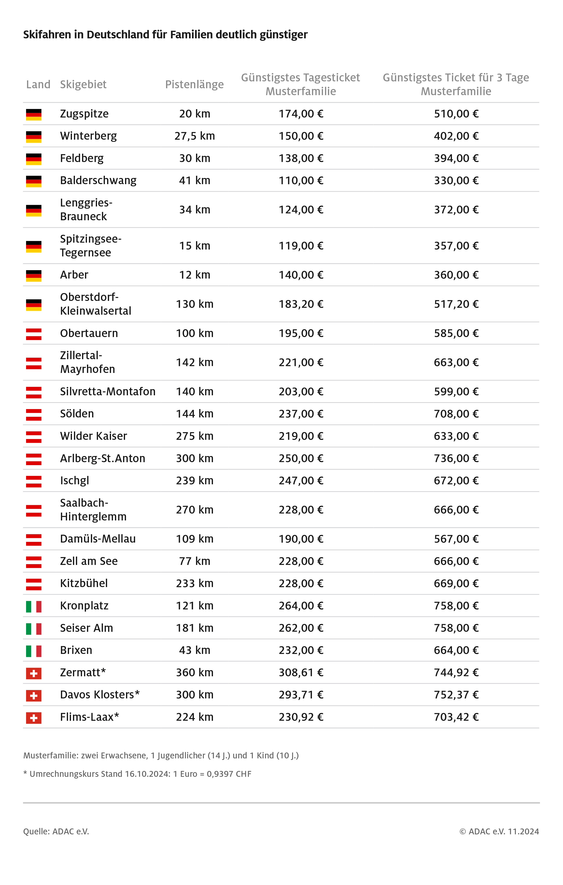 ADAC Preisvergleich: Skipasspreise steigen um mehr als fünf Prozent