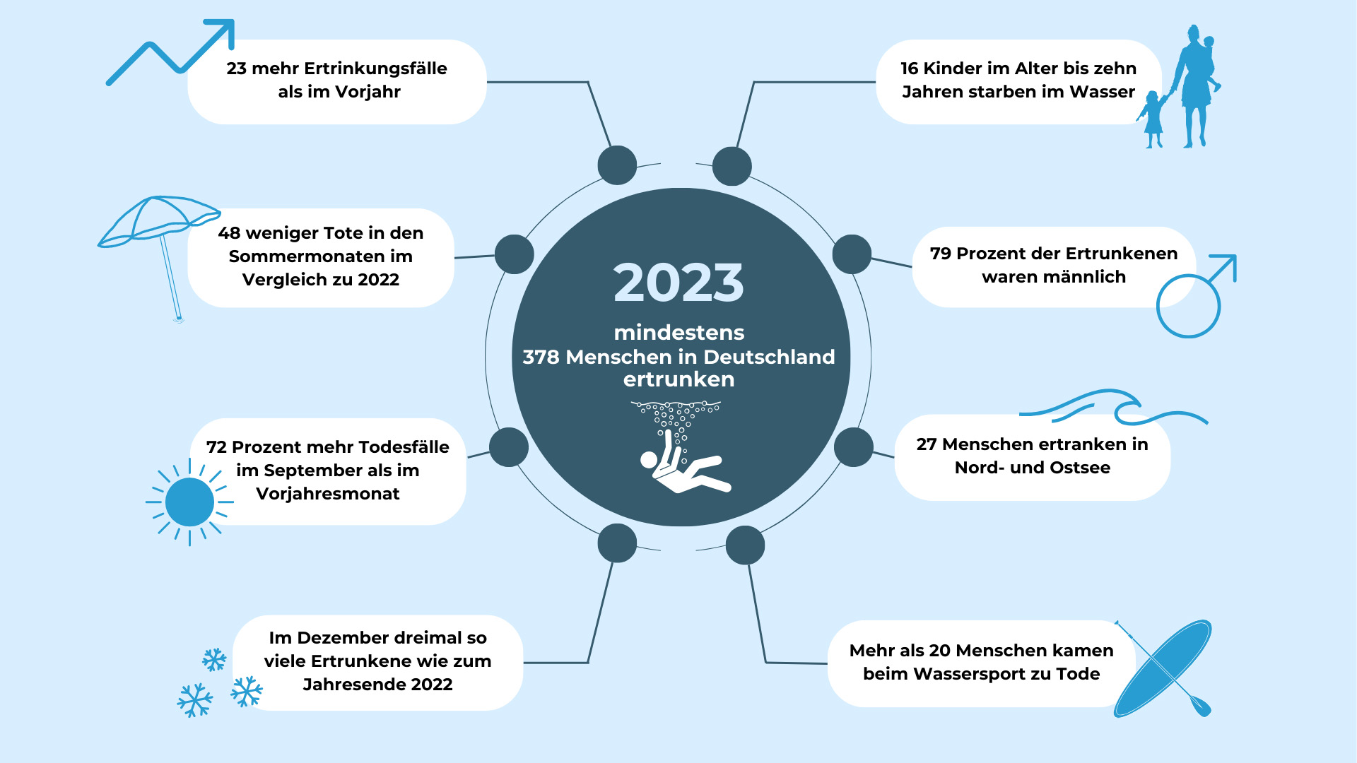 Im Jahr 2023 verzeichnete die DLRG 378 Todesfälle durch Ertrinken in Deutschland.