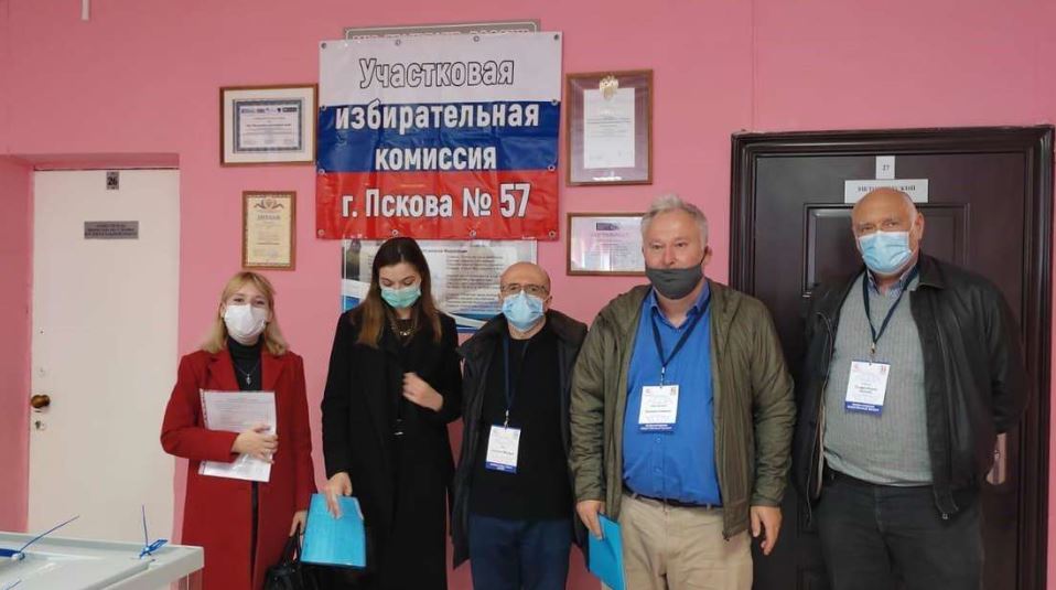 Stefan Schaller (rechts) als Wahlbeobachter bei den russischen Duma-Wahlen 2021 Bild: Screenshot aus Video / RT
