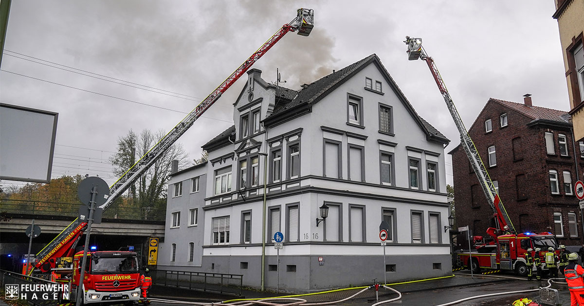 Hagen: Tot eines Menschen bei Brand in einer Dachgeschosswohnung