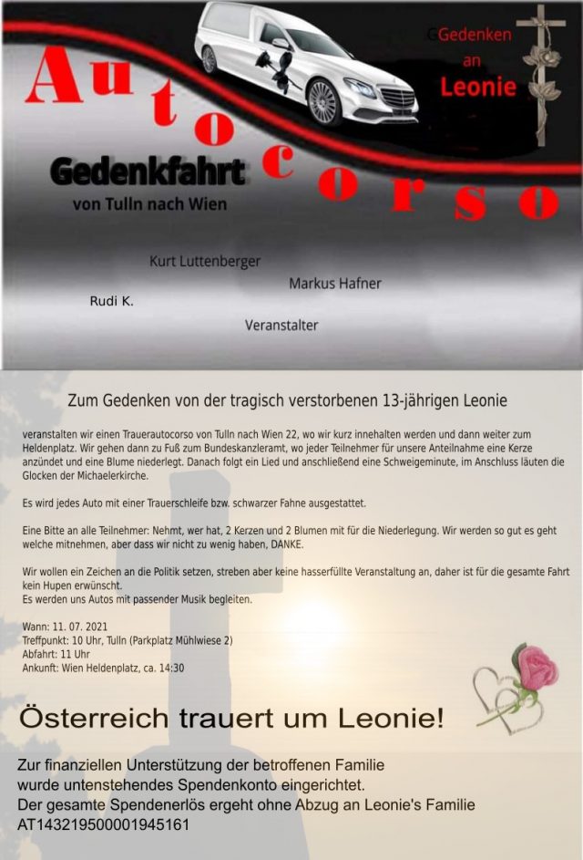 Zurück zu Großer Trauer-Autokorso zum Gedenken an Leonie (13): Hunderte Trauernde erwartet