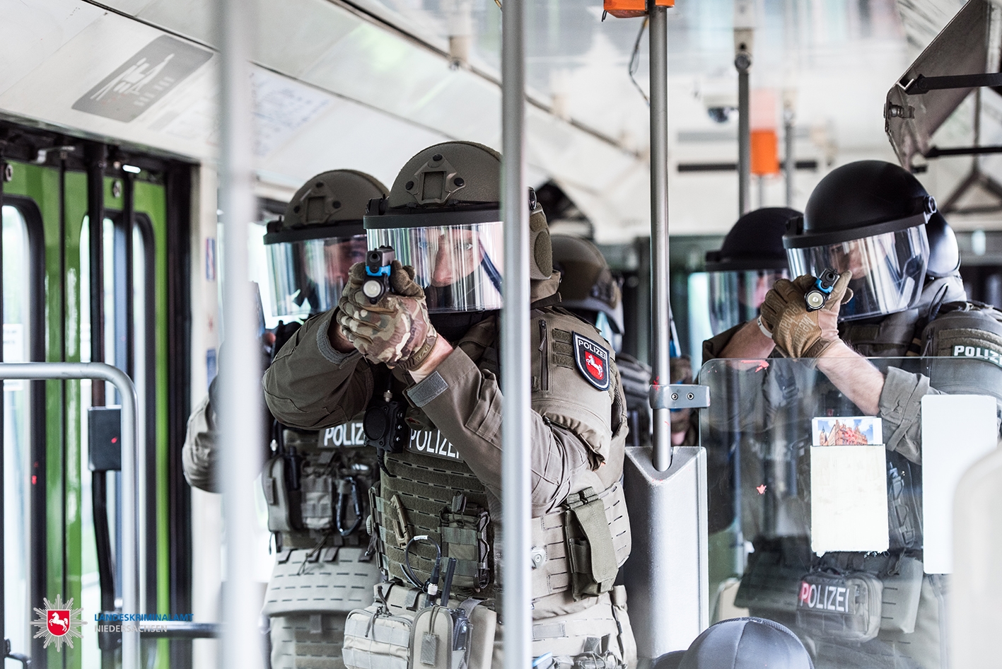 Sie sind hier: Startseite Nachrichten Vermischtes Hannover: Spezialeinsatzkommando trainiert in Straßenbahn für den Ernstfall Bild: LKA Niedersachsen
