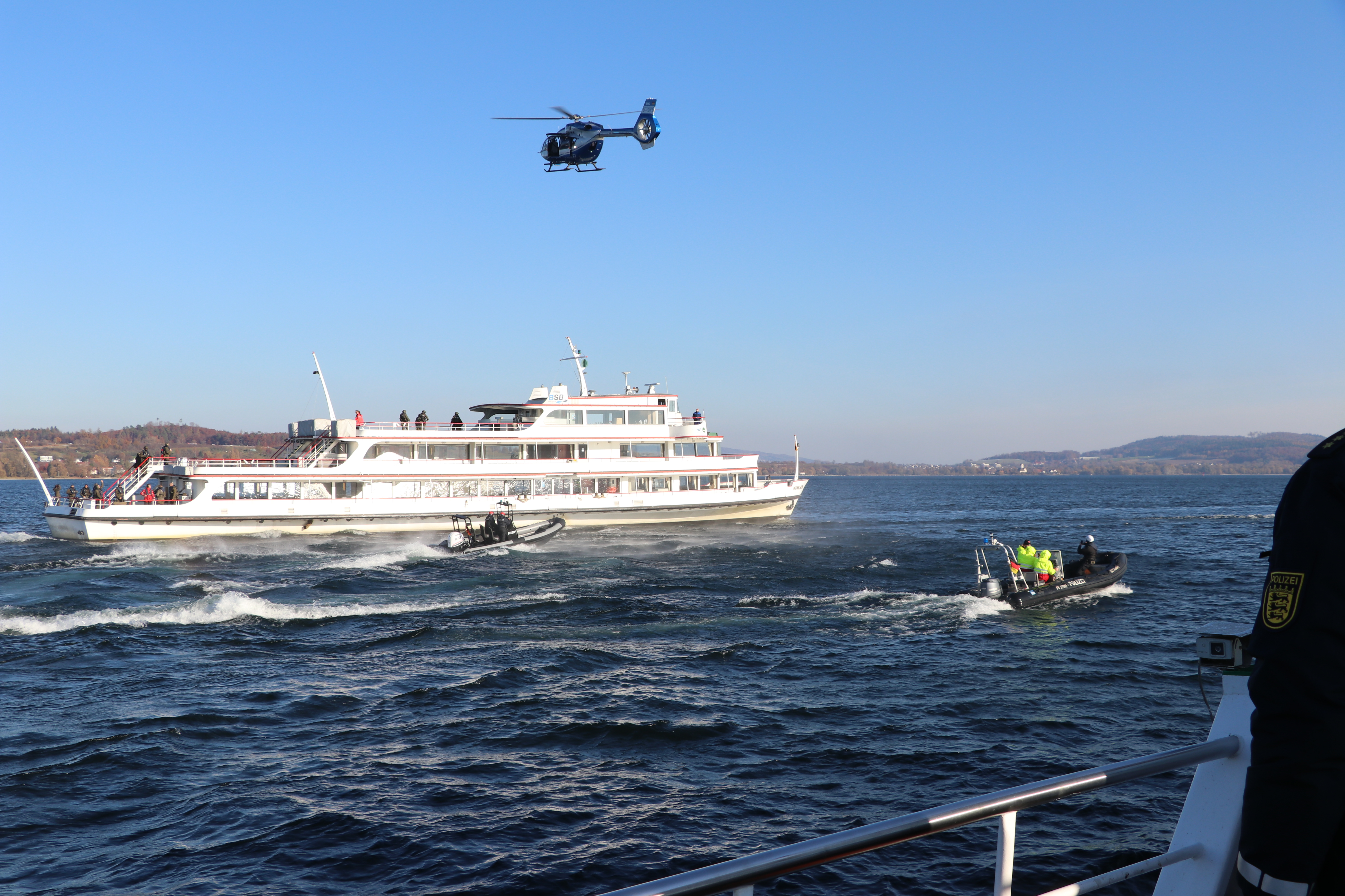 Zurück zu Überlingen: Polizeipräsidium Einsatz trainiert mit allen Einheiten auf dem Bodensee
