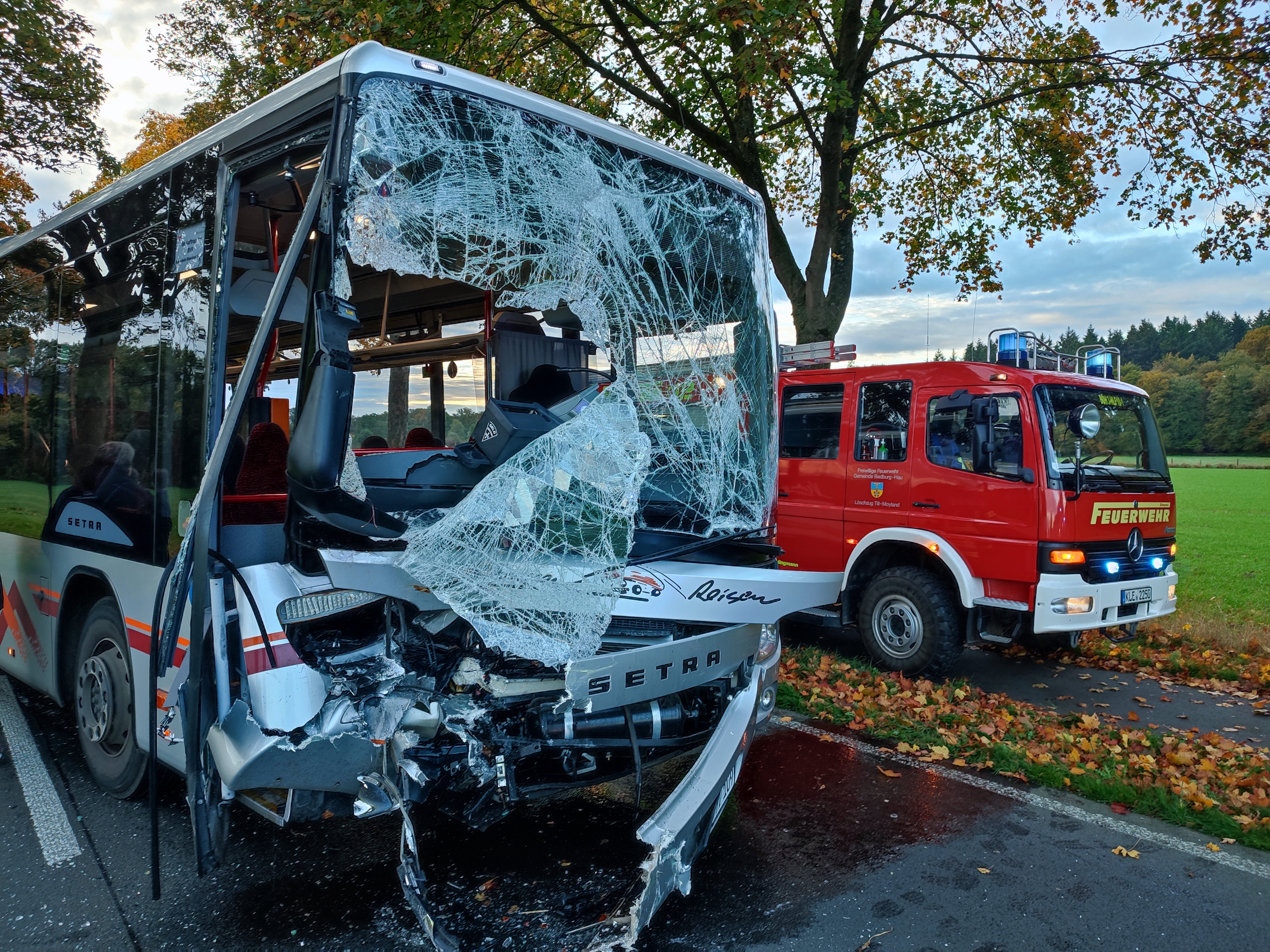 Bedburg-Hau: Bus kollidiert mit Kleinbagger