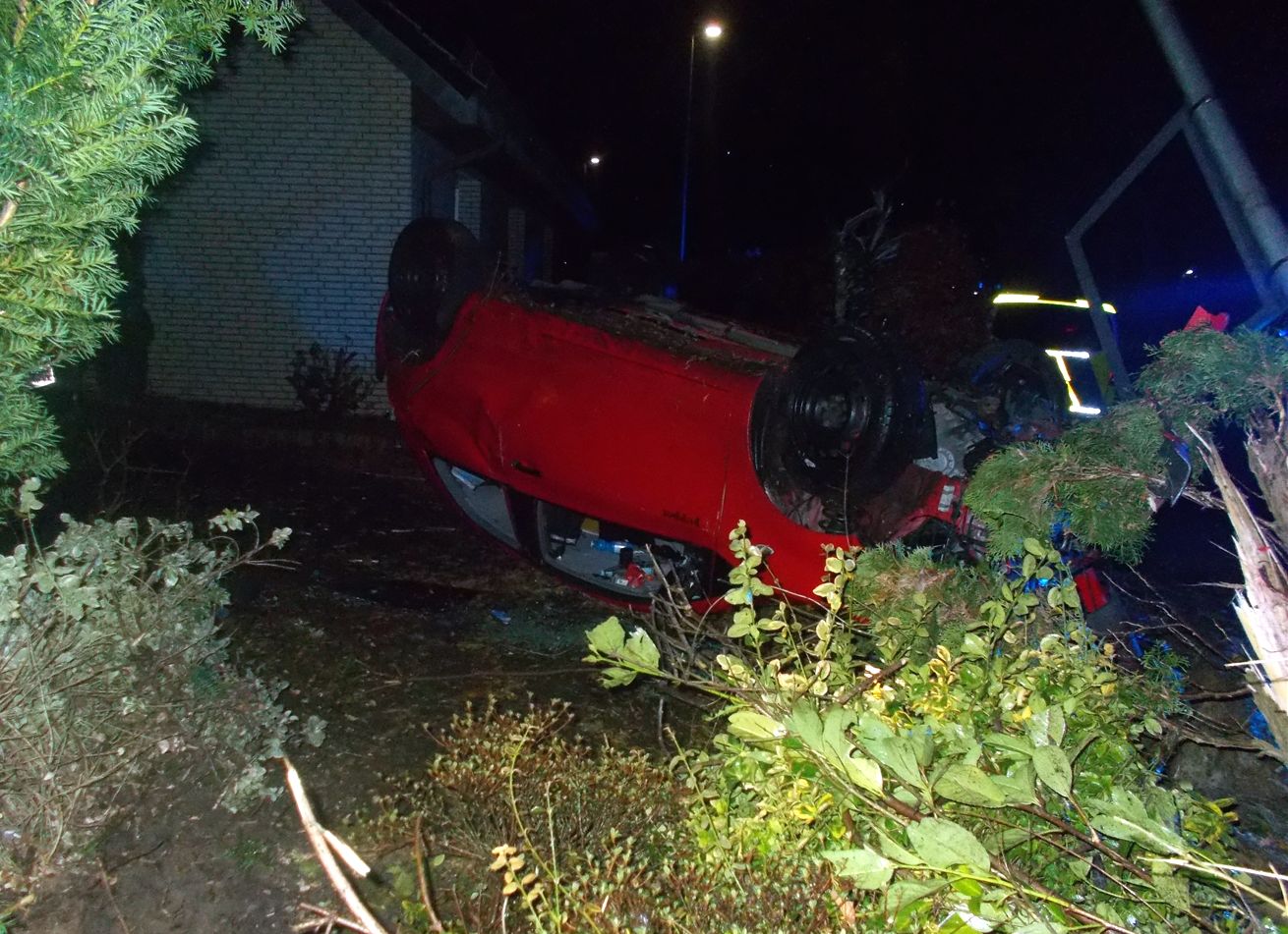 Der Kleinwagen blieb auf dem Dach liegen. Bild: Polizei Minden-Lübbecke