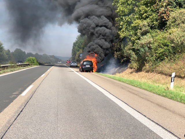 Landau-Nord: Brennender PKW auf A65