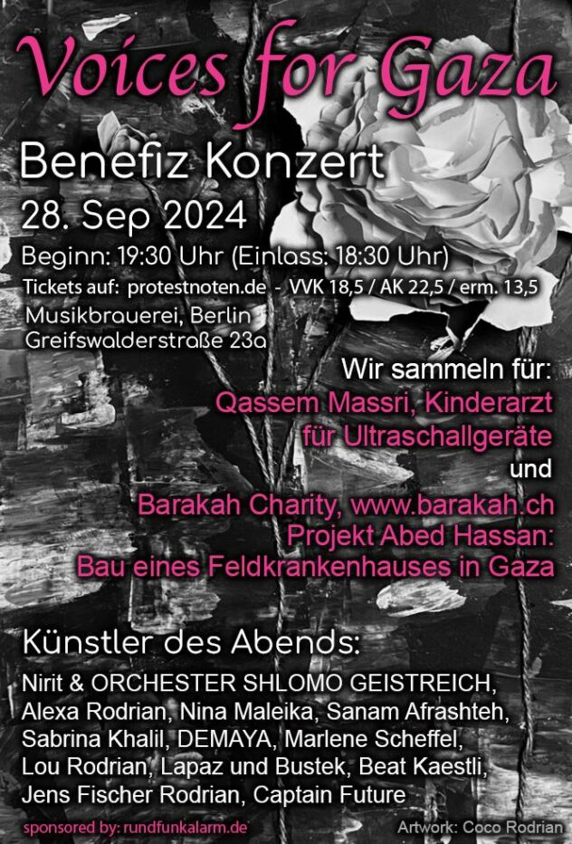 Benefiz-Konzert: Voices for Gaza am 28.9.24