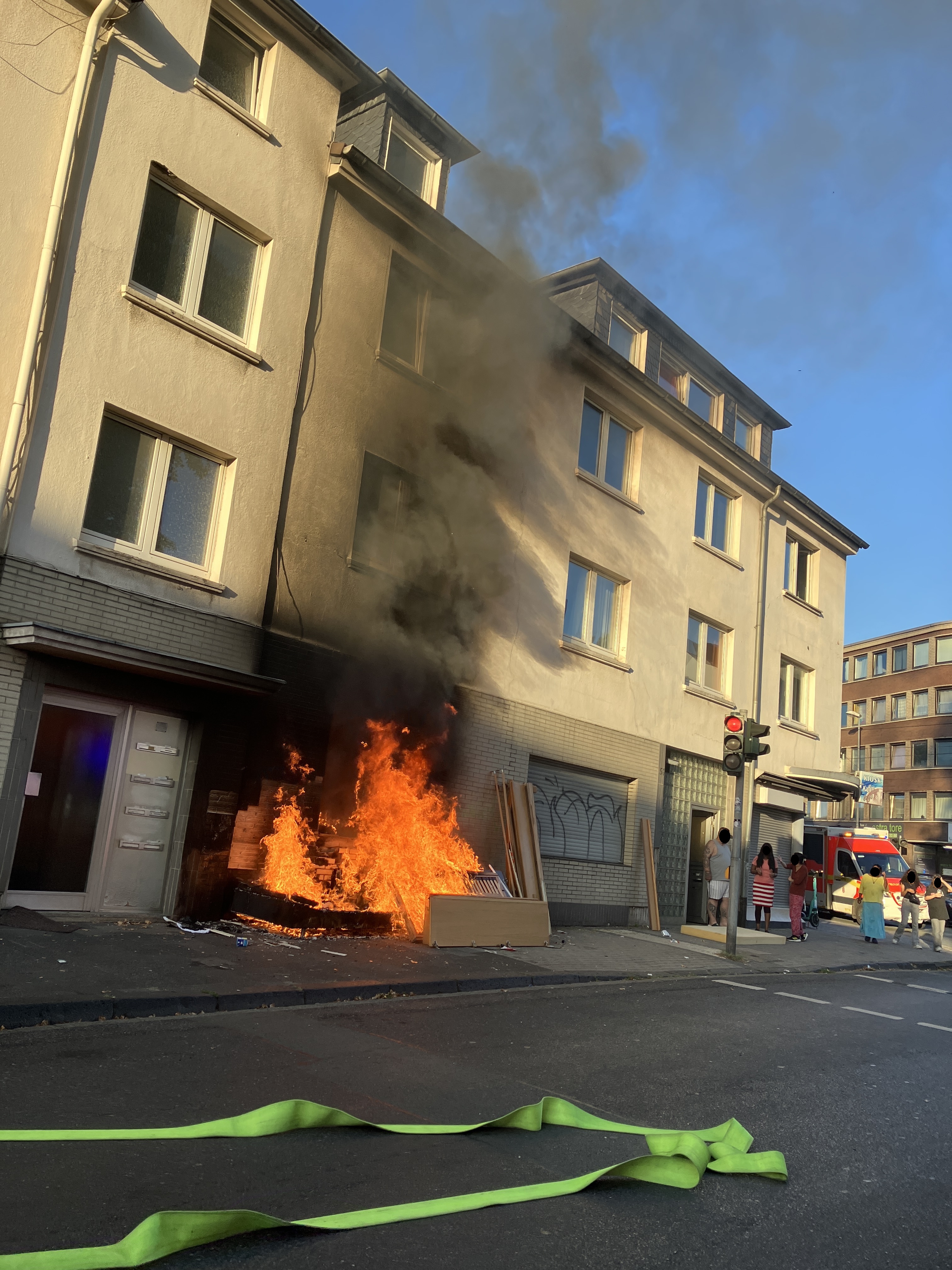 Sie sind hier: Startseite Nachrichten Vermischtes Mühlheim an der Ruhr: Brennender Unrat greift auf Wohngebäude über Bild: Feuerwehr