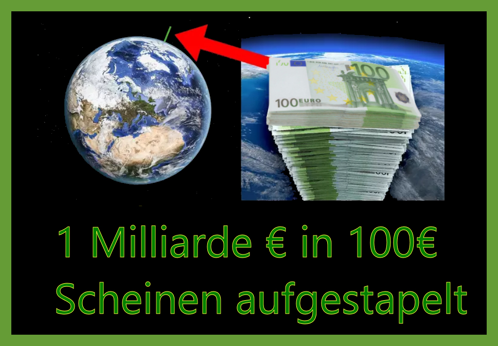 Zum Vergleich: Eine Milliarde Euro in 100 Euroscheinen aufeinander gestapelt würde diesen Turm erzeugen (Symbolbild)