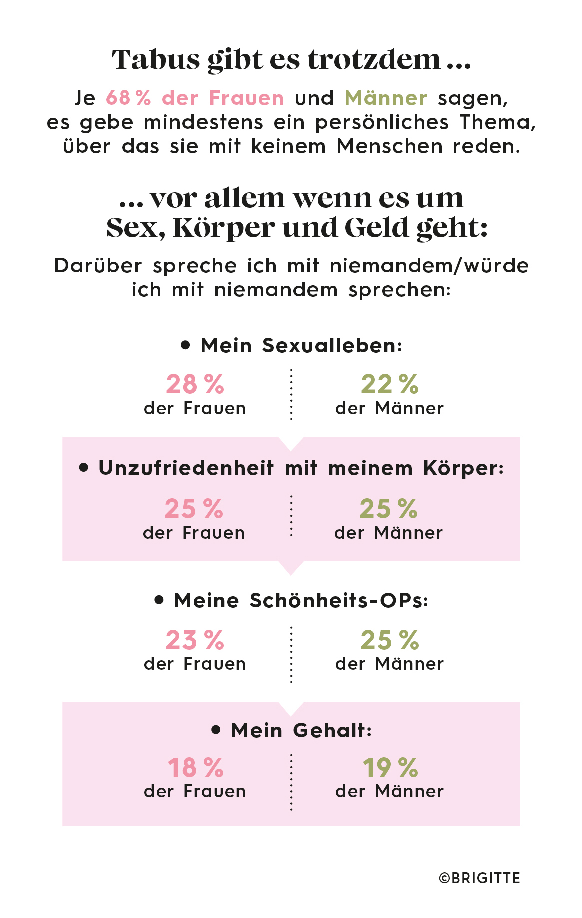 Zurück zu Tabuthemen der Deutschen sind eigenes Sexualleben, Unzufriedenheit mit Körper und Gehalt