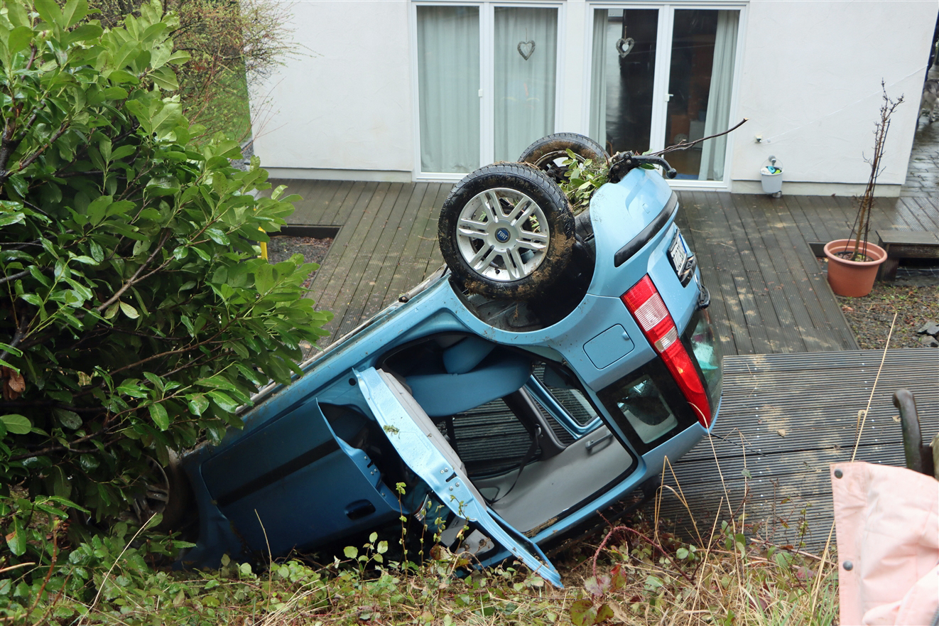 Gummersbach: Auto landet kopfüber auf Hausterrasse - zwei Schwerverletzte