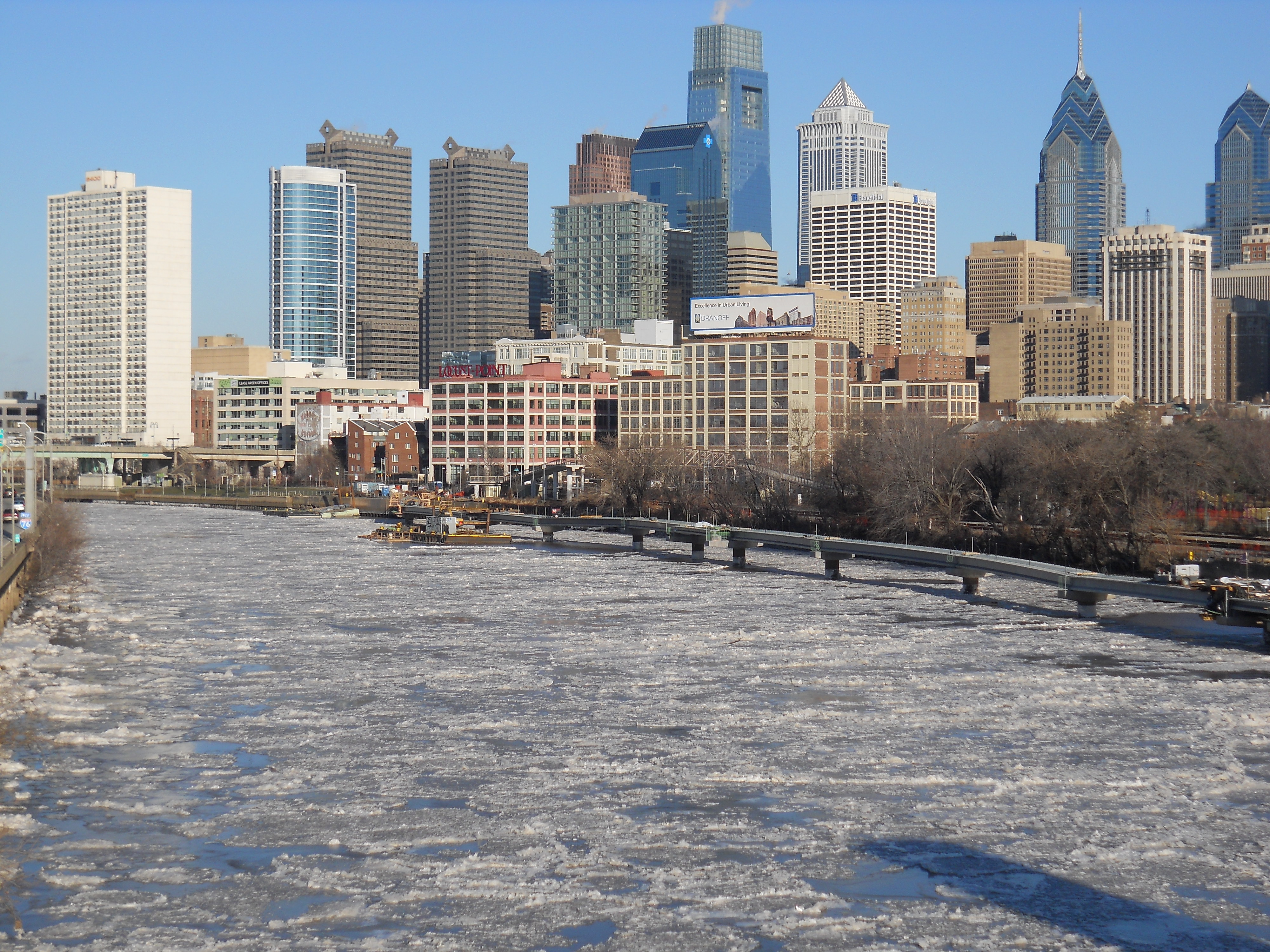 Kältewelle in Nordamerika 2014: Ice formations on the Schuylkill River in Philadelphia