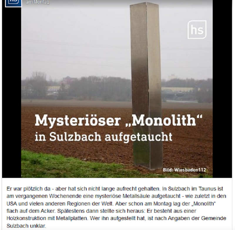 Unbekannte zerstören in Sulzbach mysteriösen Monolith