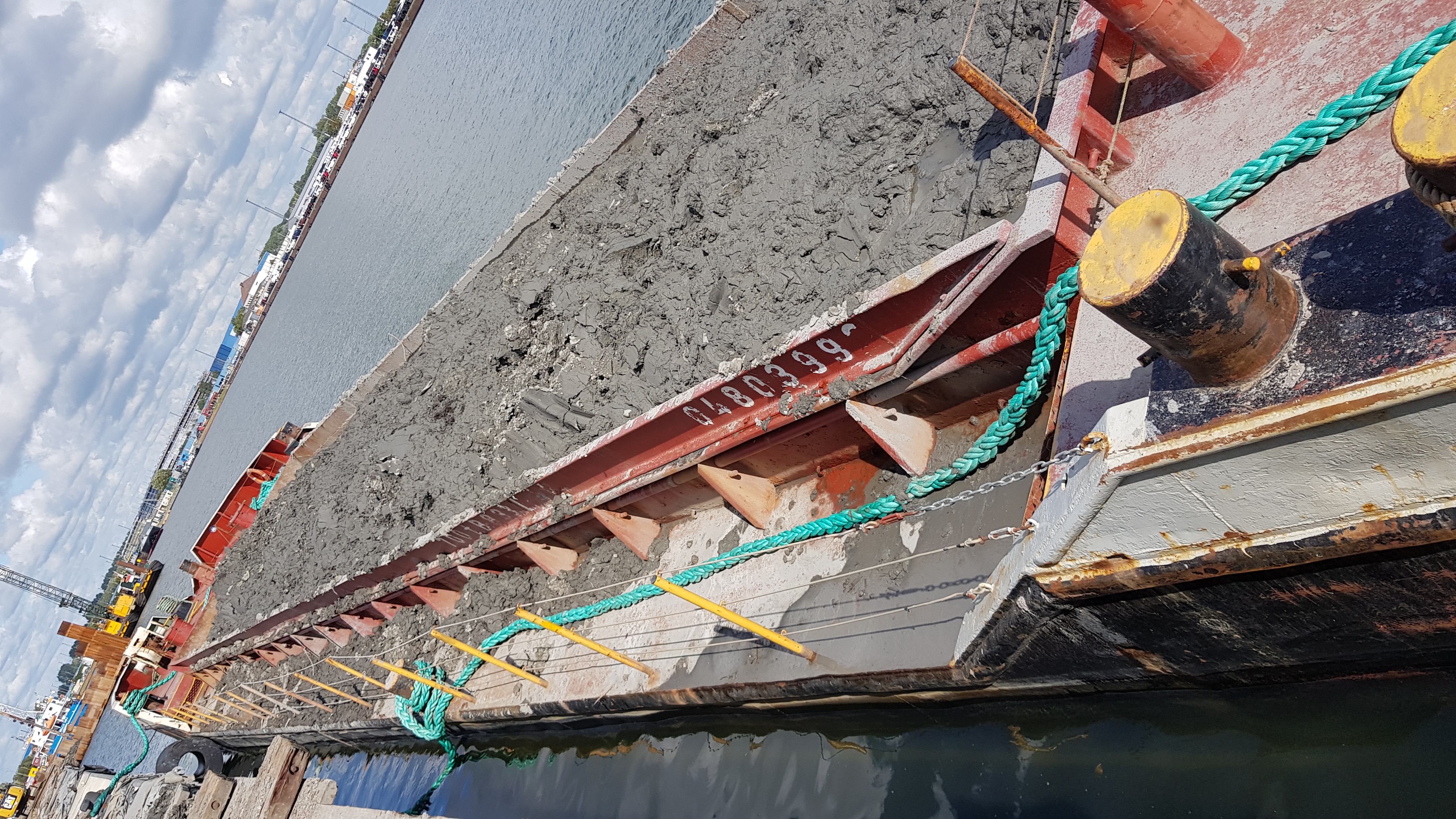 Zurück zu Bremerhaven: Schiff droht zu sinken. Feuerwehr pumpt 30.000 Liter Wasser aus einer Klappschute