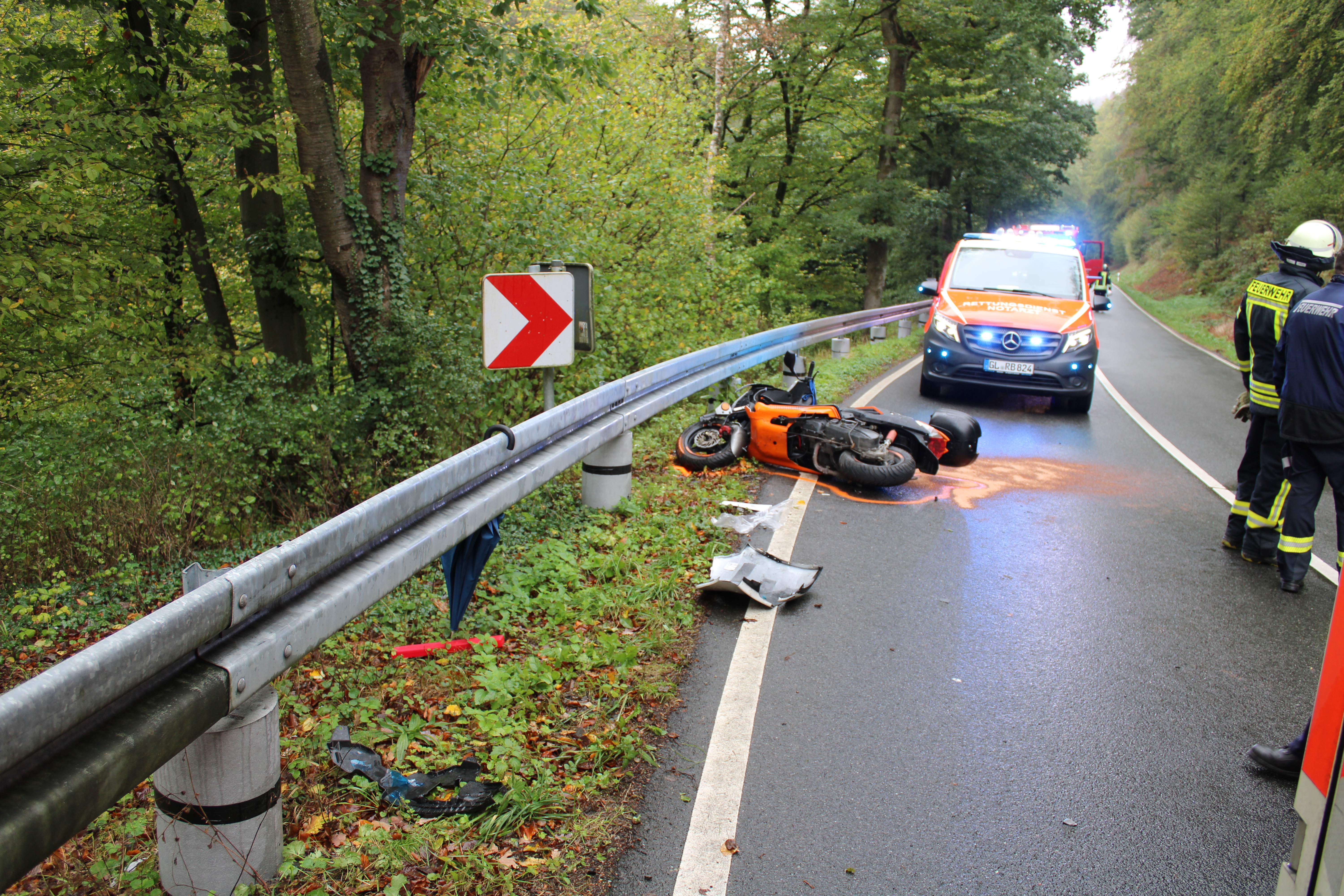 Zurück zu Kürten: Kleinkraftrad rutscht in den Gegenverkehr - Schutzengel half