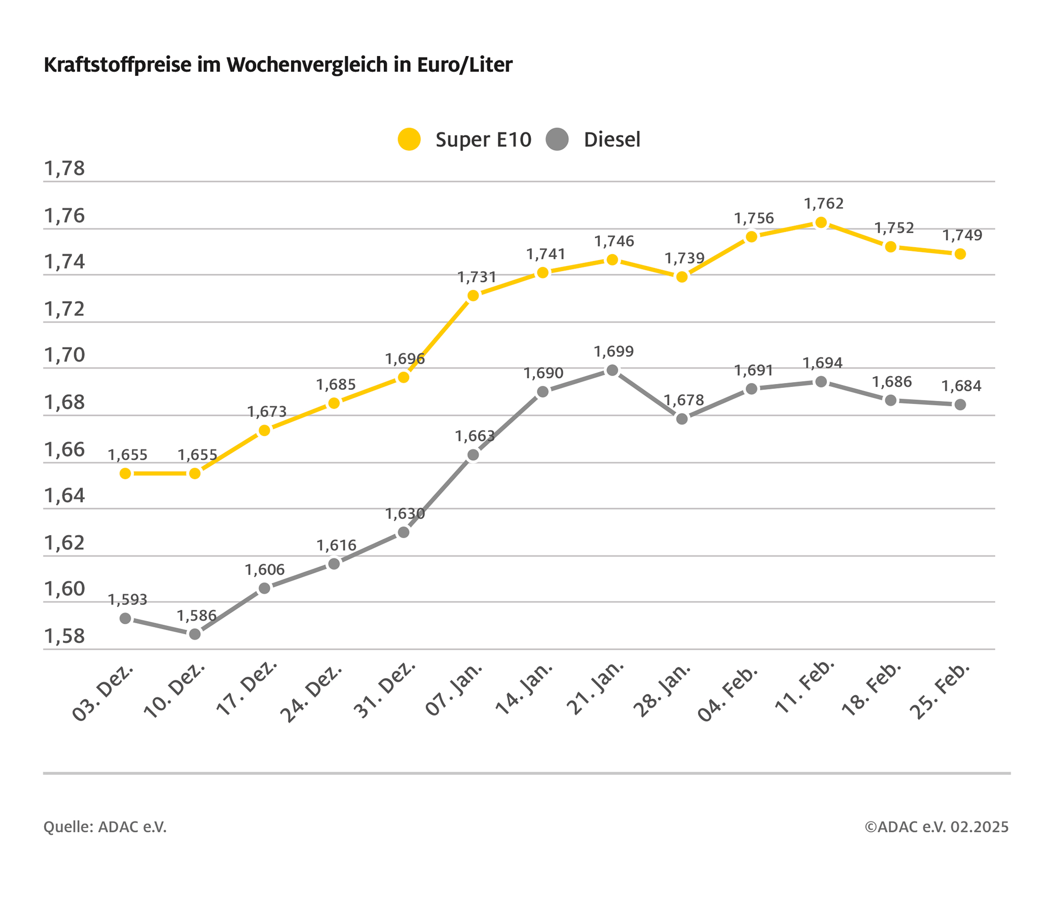 Kraftstoffpreise im Wochenvergleich / Weiterer Text über ots und www.presseportal.de/nr/7849 / Die Verwendung dieses Bildes für redaktionelle Zwecke ist unter Beachtung aller mitgeteilten Nutzungsbedingungen zulässig und dann auch honorarfrei. Veröffentlichung ausschließlich mit Bildrechte-Hinweis. Bildrechte: ADAC Fotograf: © ADAC Grafik