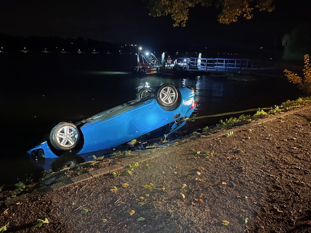 Zurück zu Essen-Fischlaken: Pkw im Baldeneysee - zwei Personen unverletzt - Fahrzeug geborgen