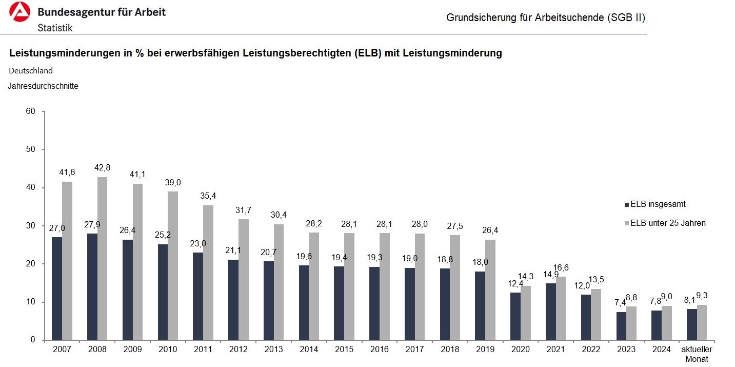 Zurück zu Zahl der Leistungsminderungen ist 2024 gegenüber dem Vorjahr deutlich gestiegen BA-Presseinfo Nr.17