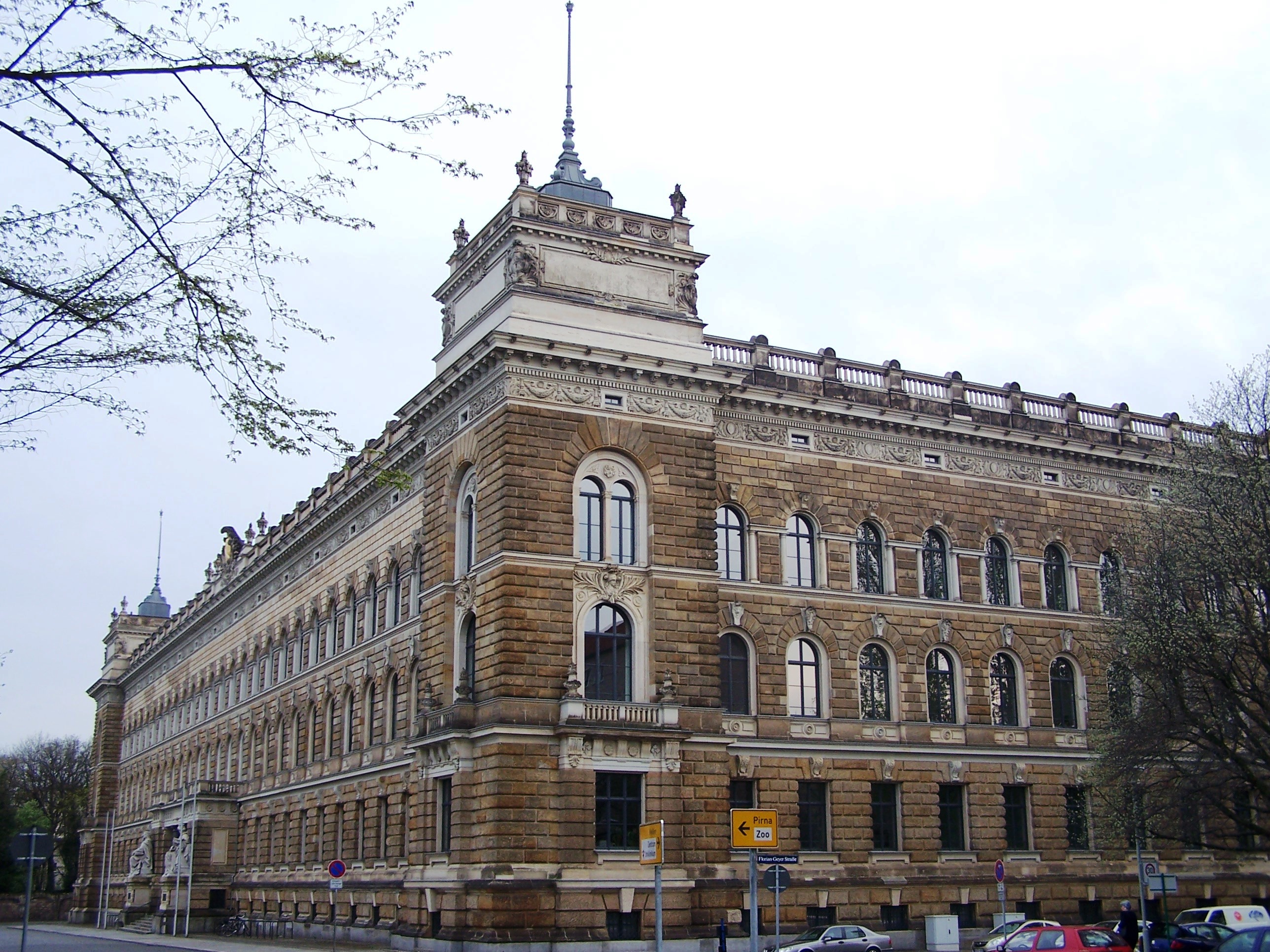 Blick von Norden aus Richtung Sachsenplatz auf das Amtsgerichtsgebäude, in dem das Landgericht Dresden untergebracht ist