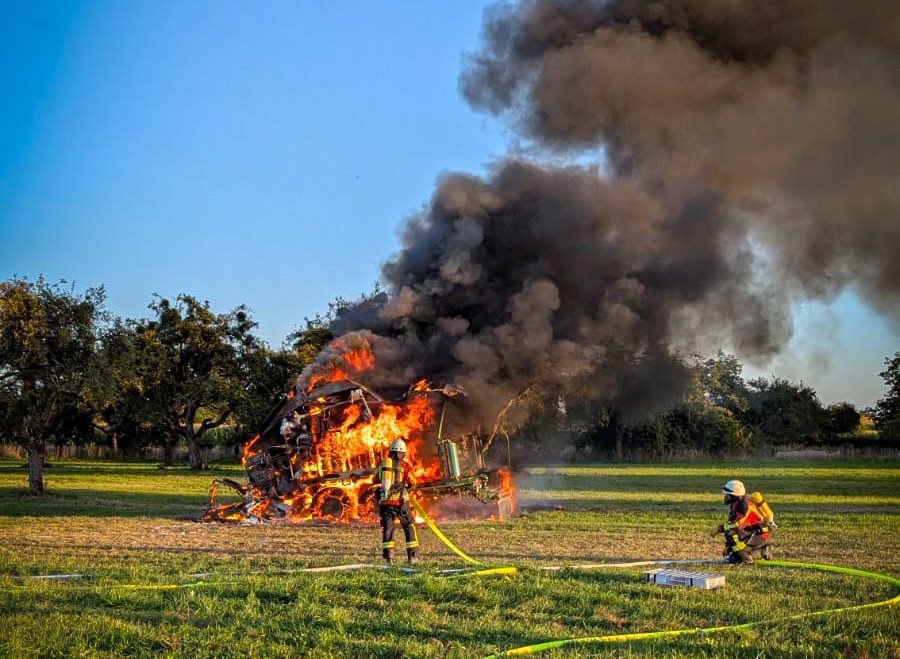 Oberteuringen: Ballenpresse in Vollbrand in Hefigkofen