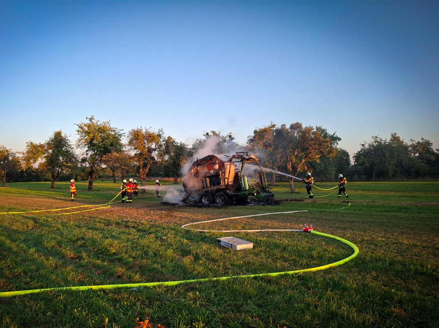 Oberteuringen: Ballenpresse in Vollbrand in Hefigkofen