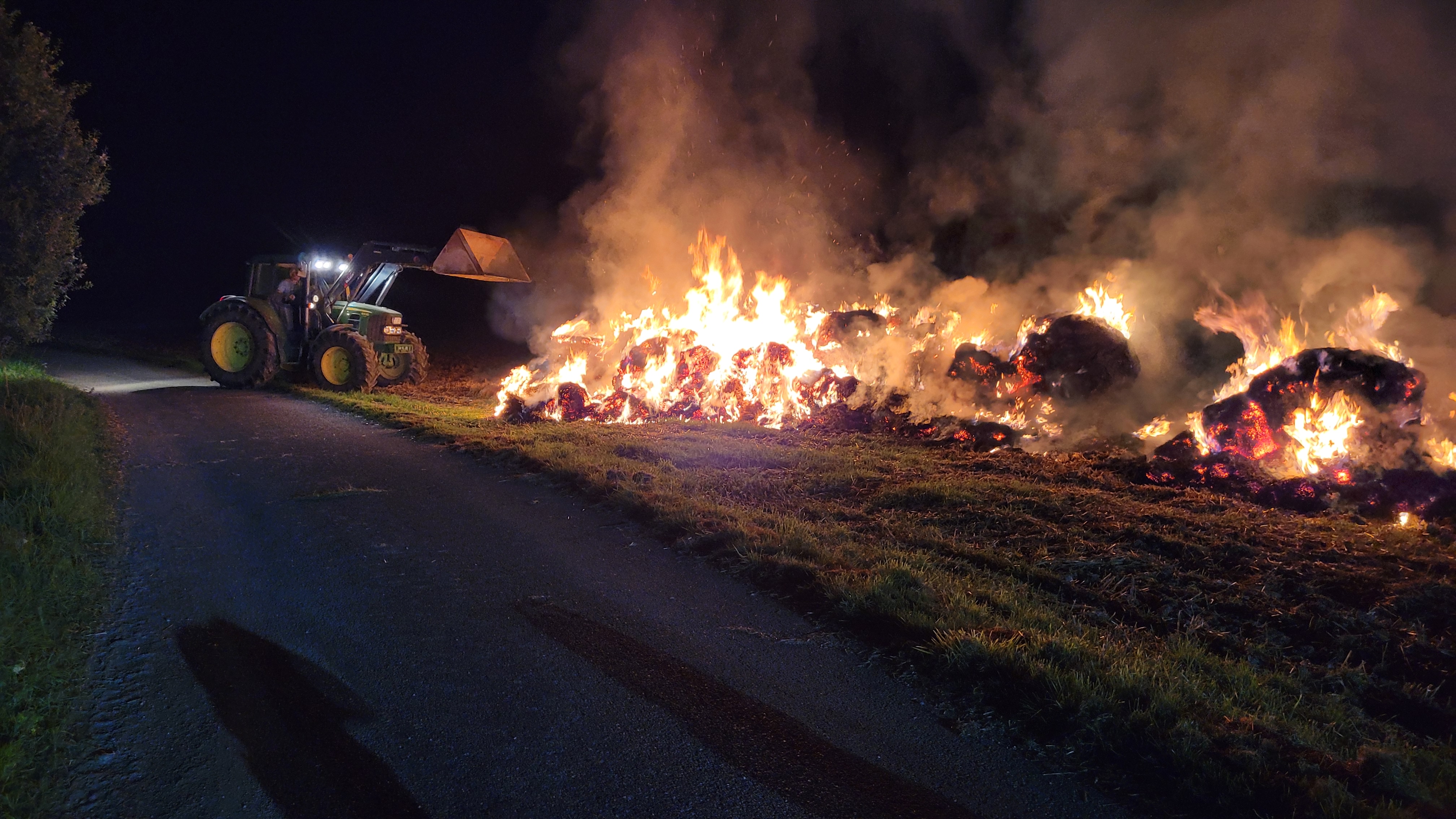 Mit zwei Treckern wurde das Brandgut auseinandergezogen Bild: Feuerwehr