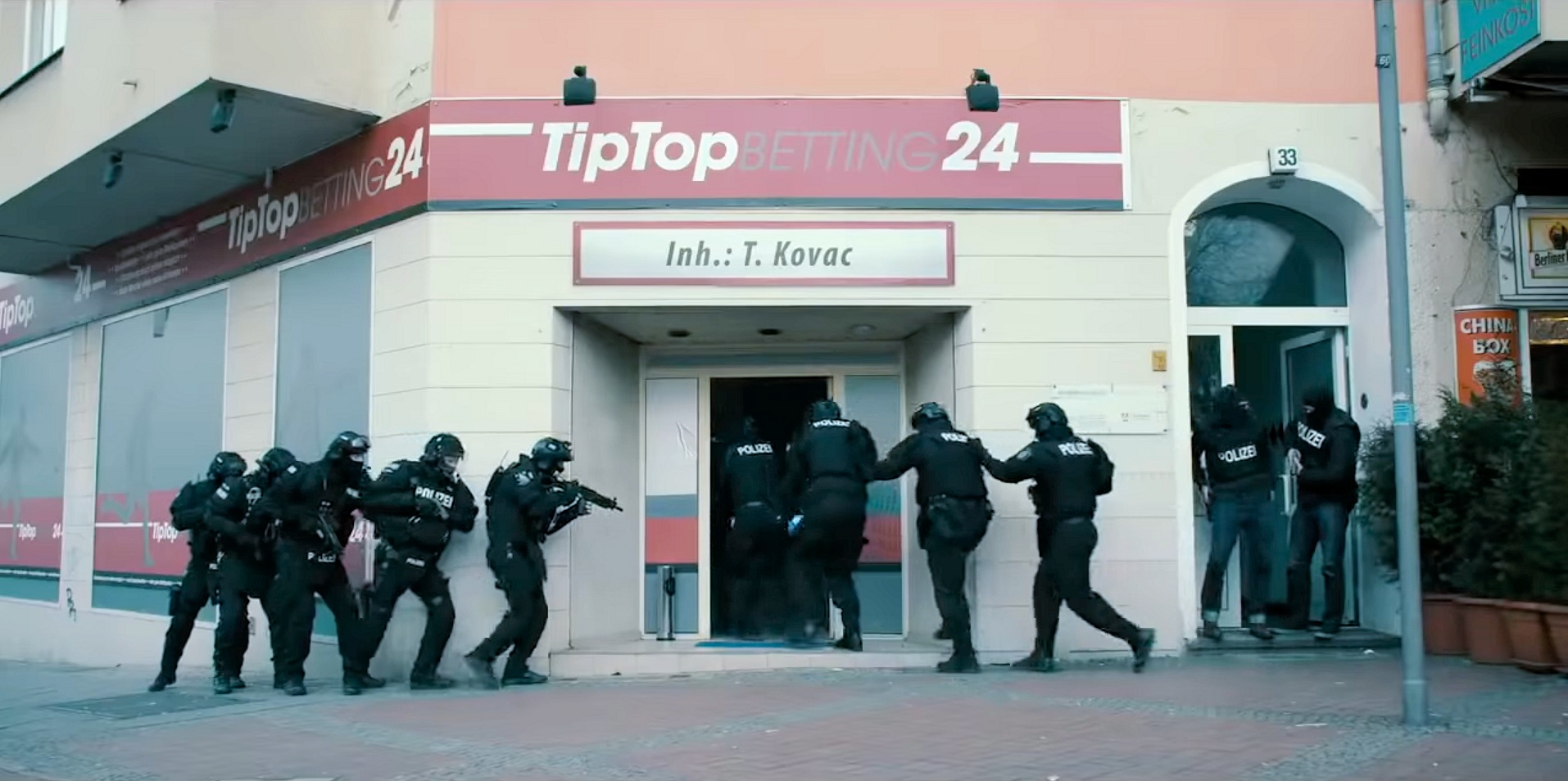 Bild: Screenshot Youtube Video: "Dogs of Berlin - SEK stürmt Wettbüro der Kovac Mafia" / Eigenes Werk