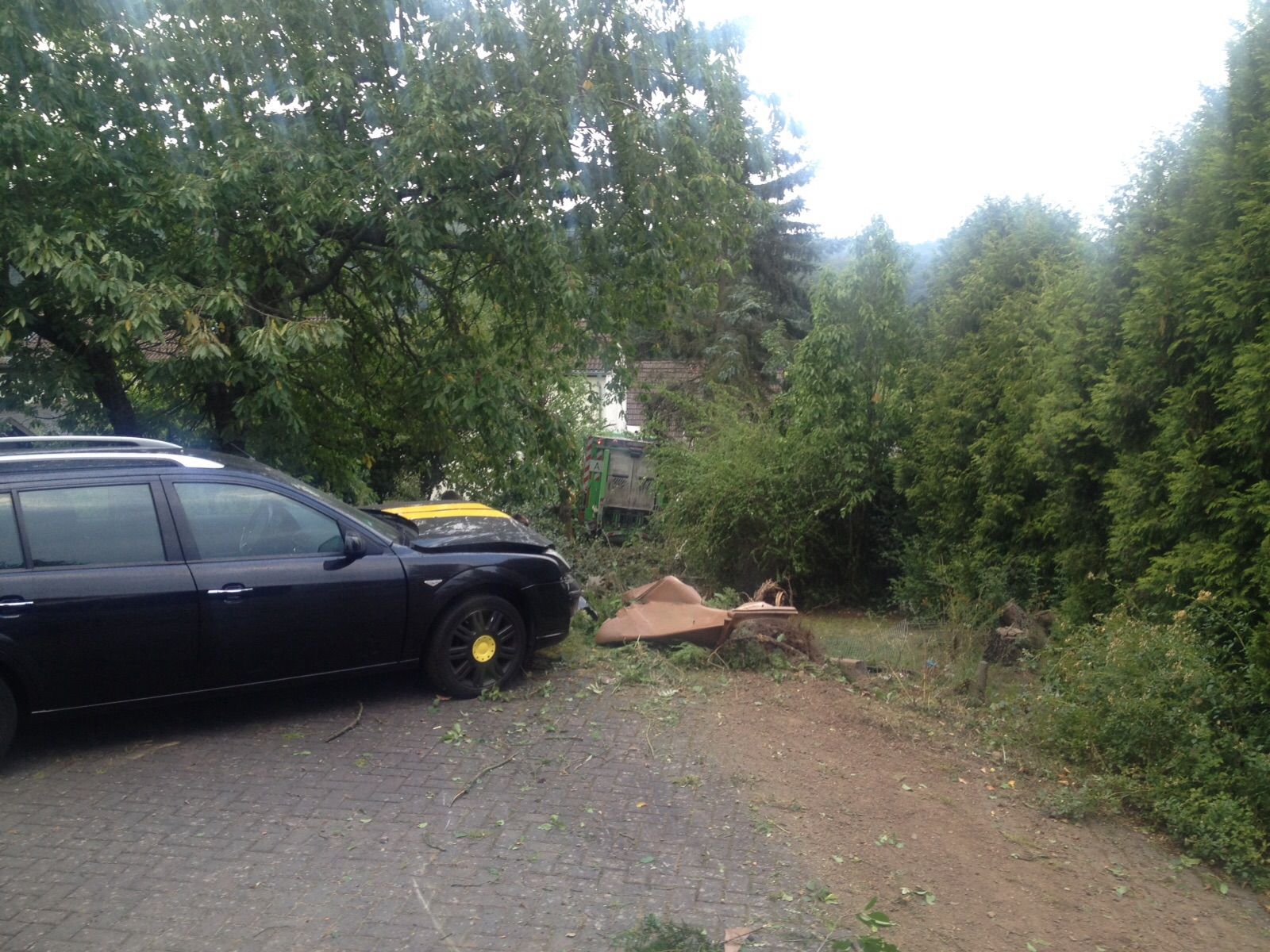 Diesen PKW schob der Müllwagen zur Seite.