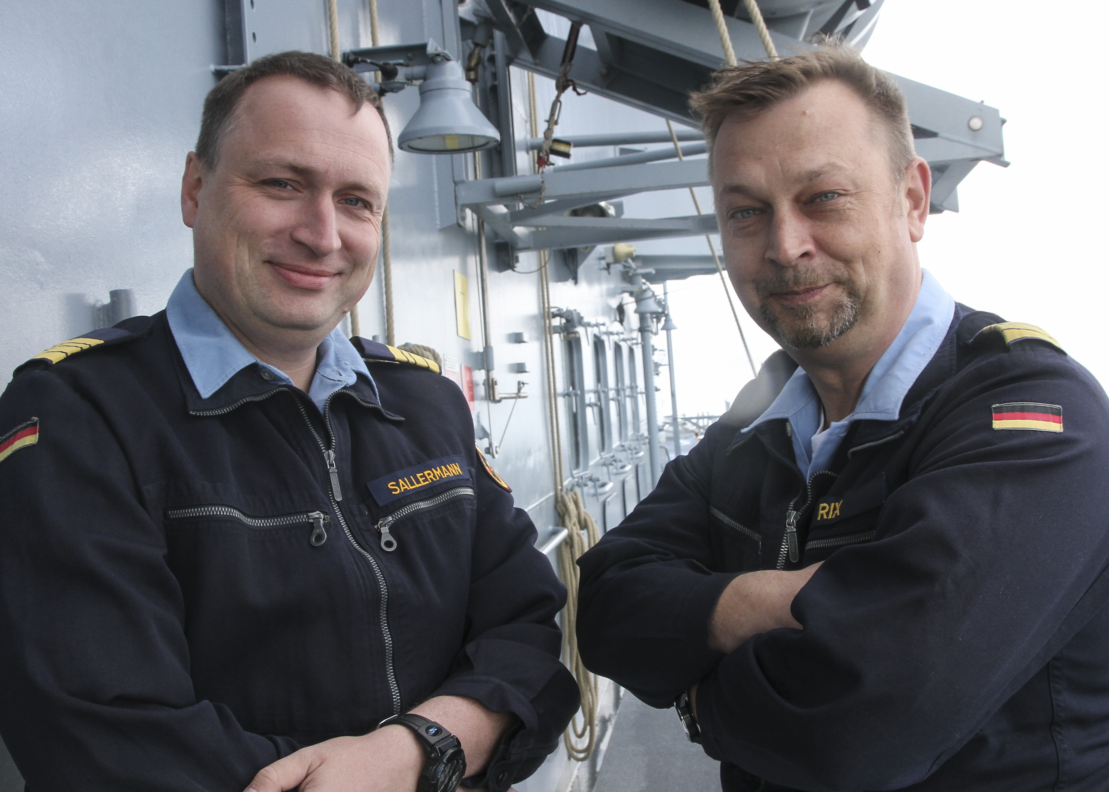 Alter und Neuer Kommandant der Fregatte Lübeck. Hier Jetziger Kommandant FKpt Sallermann Bild: Kim Brakensiek