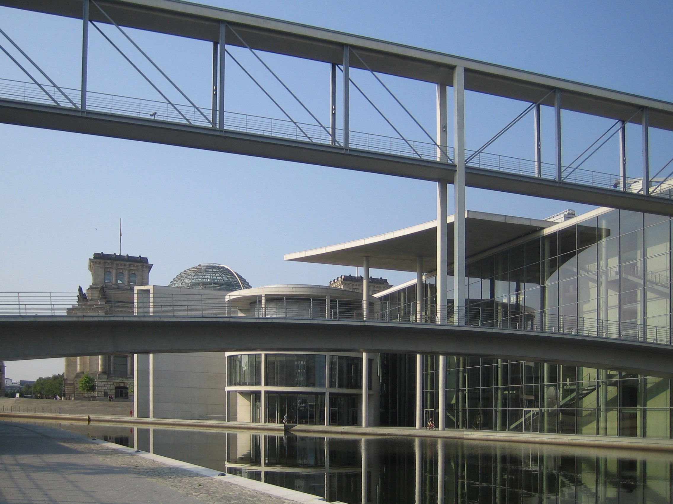 Paul-Löbe-Haus: Ostseite, im Hintergrund der Reichstag