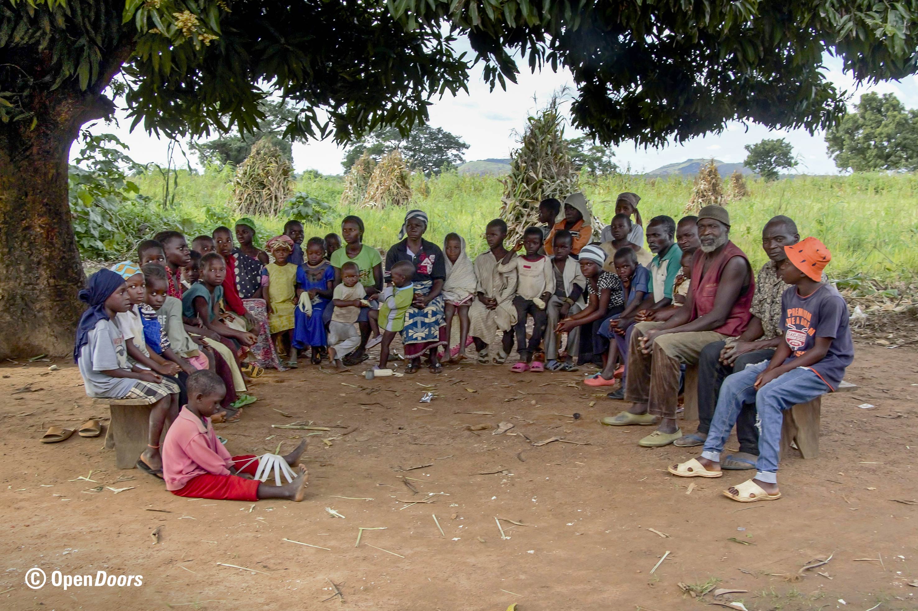 Nach einem Überfall von Fulani Viehhirten im April 2020 müssen sich die Christen aus der Gemeinde von Pastor Jeremiah unter einem Baum treffen. Bild: Open Doors Deutschland e.V. Fotograf: Open Doors
