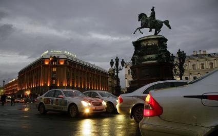Eine Woche nach dem Start in Paris erreicht die Marathon-Flotte aus 36 Mercedes-Benz E-Klassen nach rund 3550 Kilometern das erste Etappenziel in St. Petersburg (Isaaksplatz). Quelle: DaimlerChryslerAG