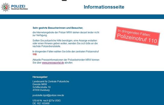 Aktuelles Bild von der abgeschalteten Webseite der Polizei NRW