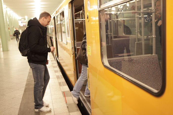 Mit einem Blindenstock orientiert sich der junge Mann auch in der U-Bahn. Bild: ©DBSV/A.Friese