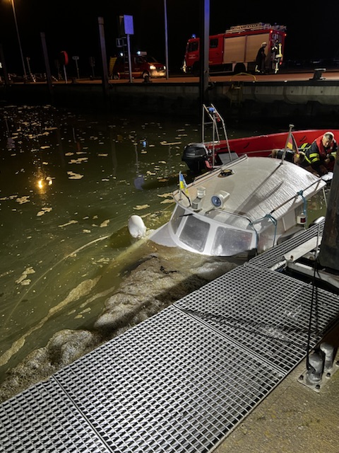Hafen Neßmersiel: Gesunkenes Motorboot