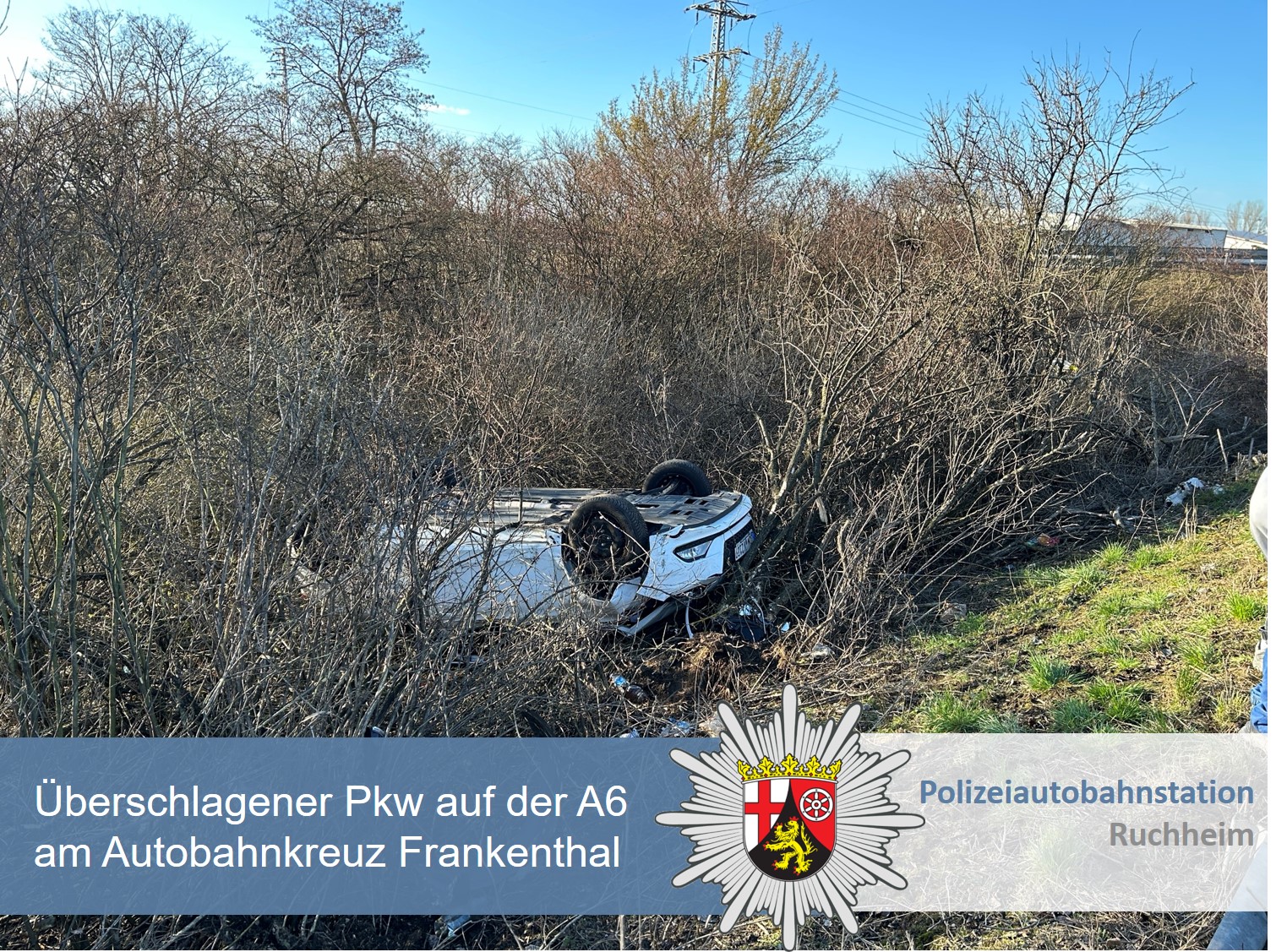 Frankenthal: Auto überschlägt sich am Autobahnkreuz